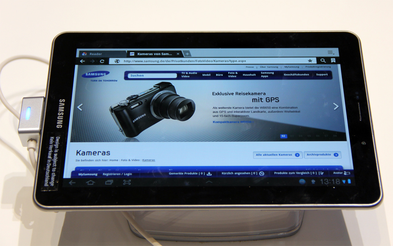 "Суд в Дюссельдорфе, Германия, по требованию компании Apple запретил Samsung экспонировать планшет Galaxy Tab 7.7 на выставке IFA 2011."