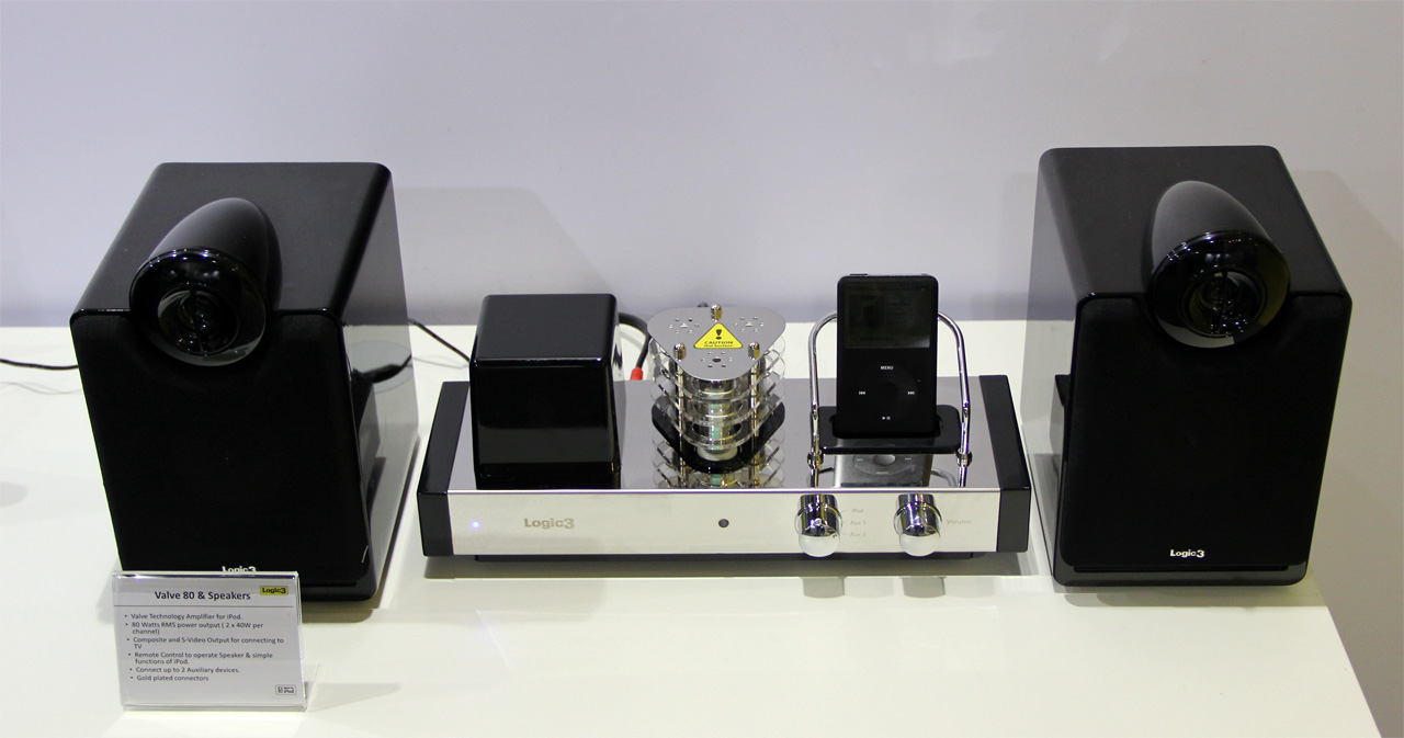 Вот такой хайтековый док для айфона. Теплый ламповый звук, между прочим. В комплект входит лампа. Врубаете айфон, врубаете лампу. Звук сразу теплеет.