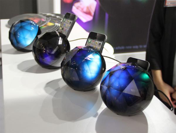 Доки со светомузыкой. На айфон ставится специальное приложение, включается музыка, вставляется в такой шарик-док. Тот переливается красками в соответствии с музыкой.