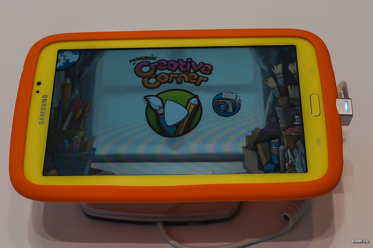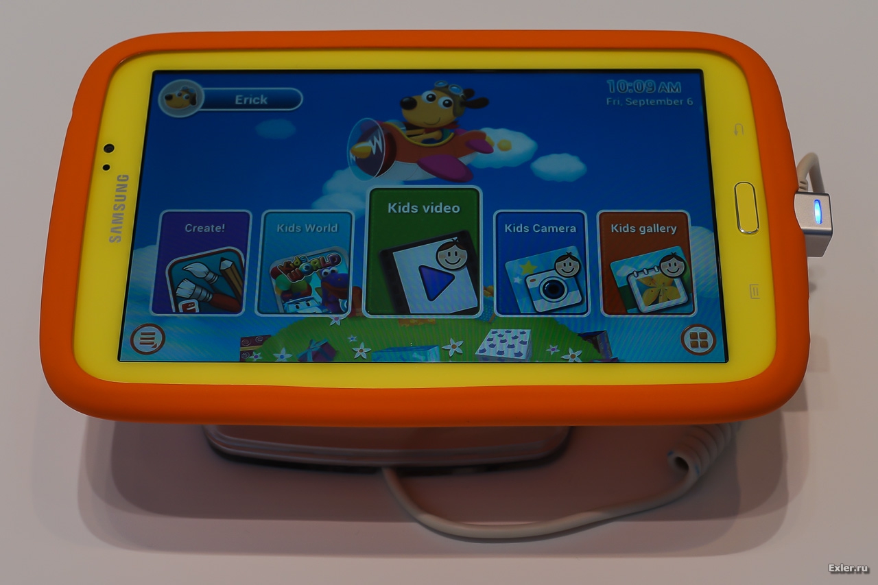 Новый планшет - Samsung Galaxy Tab 3 kids. Специальная версия для детей. Вообще выглядит любопытно, но русский пока вроде не поддерживается.