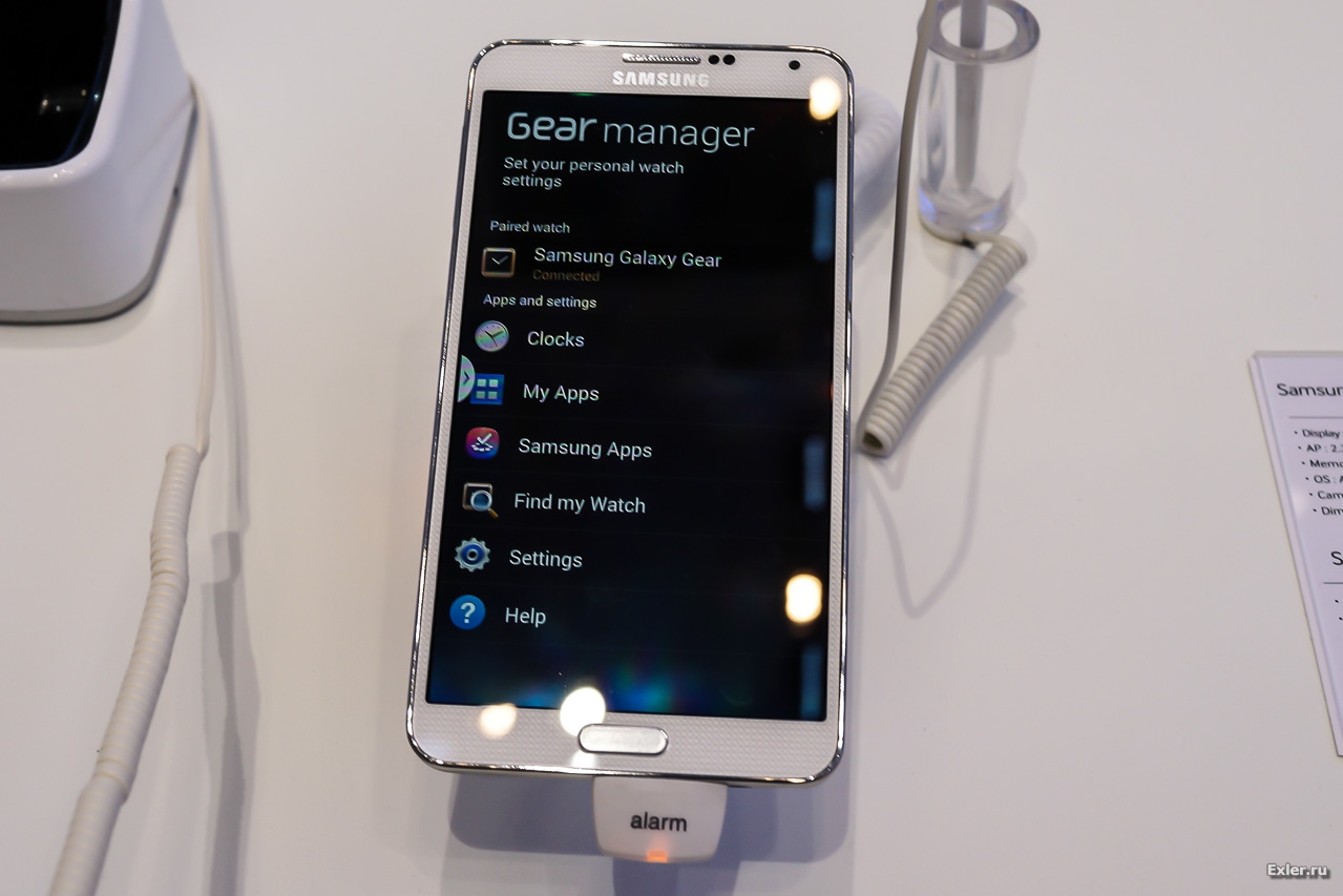 Третья любопытная особенность. Это гаджет под Samsung Galaxy Note 3. Приложение для работы с этими часами сделано только для Samsung Galaxy Note 3 - его нет в Google Play. Это вообще, ребята, уже даже реально смешно: что, нельзя было сделать обычное андроидное приложение под любой телефон?