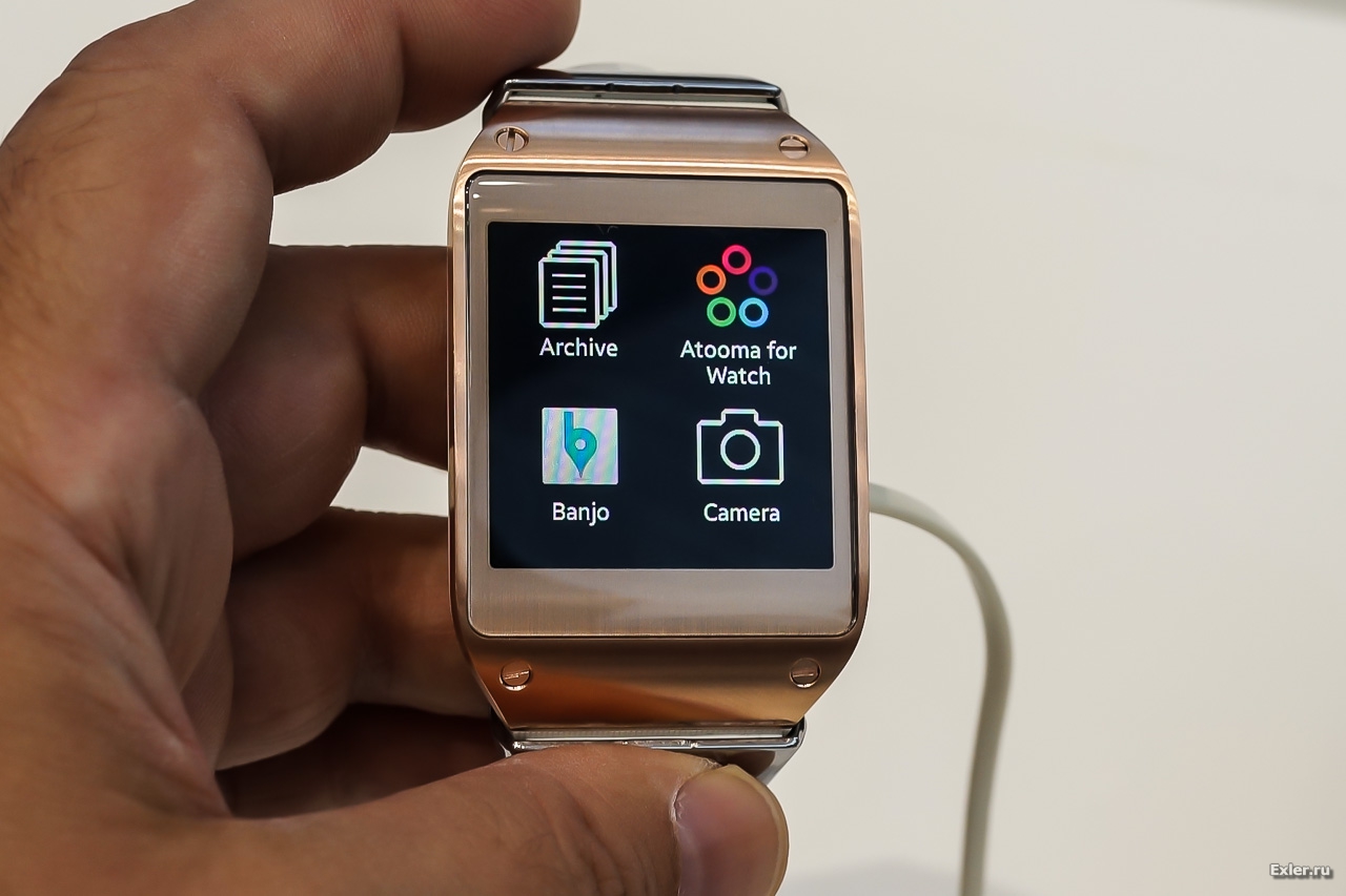 Дисплей сенсорный, в часах установлены различные приложения. Ну и Samsung договорилась с 70 разработчиками о том, что они сделают для Gear свои приложения. Правда, одновременно туда можно установить только 10 приложений.