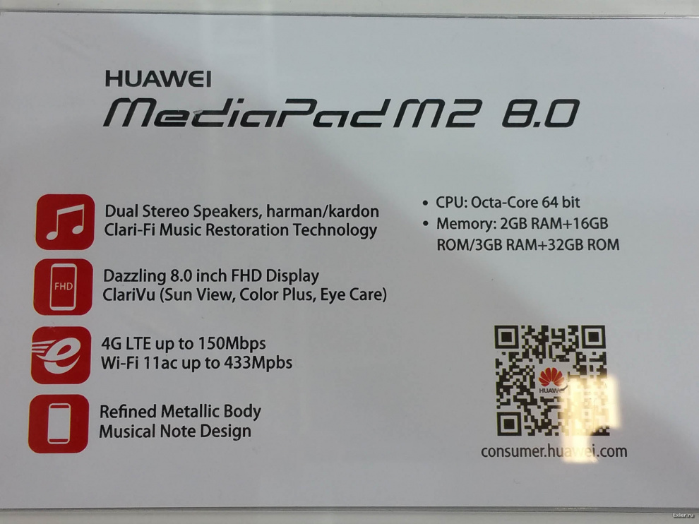 Планшет MediaPad M3 8.0, похожий на увеличенный Mate 7.