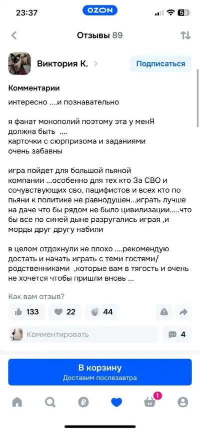 Олег Бочаров у себя в телеге тоже отметил озоновский товар: