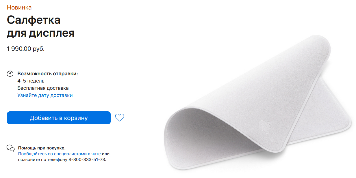 Совсем недавно в магазине Apple было представлено новое инновационное устройство - конечно же, с надкушенным яблочком на нем - салфетка для дисплея! Стоит устройство какие-то жалкие 1990 рублей.