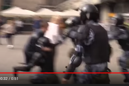 Я же увидел только человека, который от неожиданного нападения группы группы бойцов пытается не упасть на асфальт и сохранить свой телефон целым.