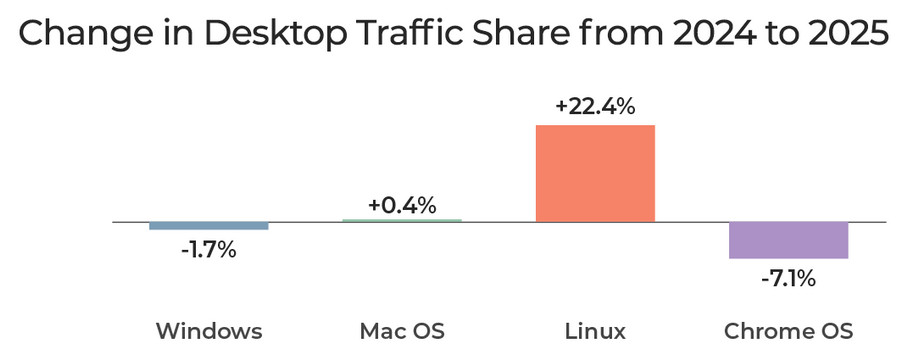 Изменения трафика за последний год. Пользователи Linux прям резко прибавили в темпе посещаемости! Так держать!
