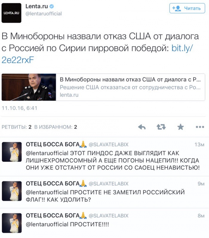 Уверен на 110% что этот идиот даже не понял тонкий троллинг и намёк на высказывание Лаврова