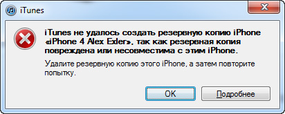 iTunes начал долго и нудно пытаться что-то бекапировать, а потом выдал вот такое совершенно психоделическое сообщение.