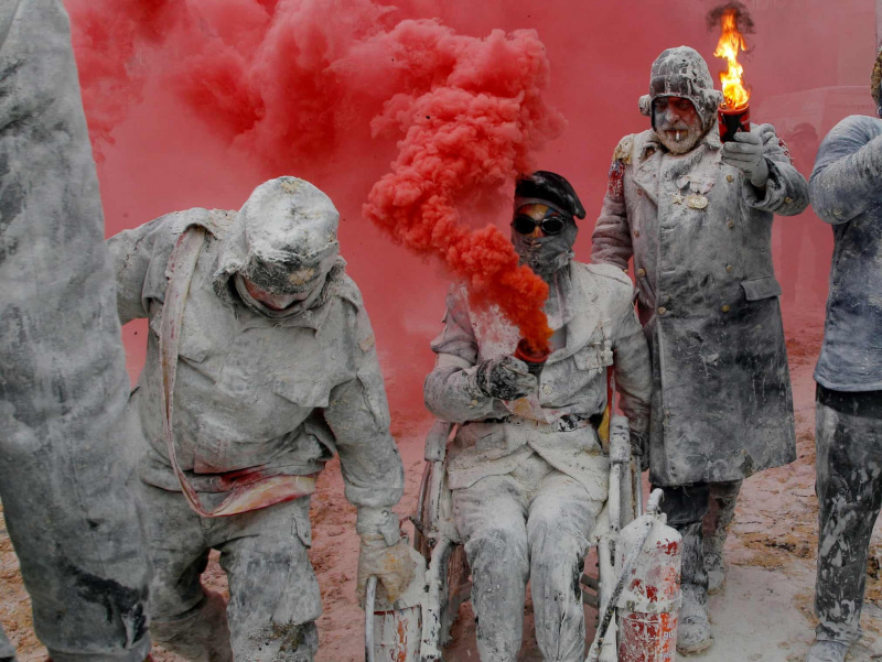 "Военный переворот" - традиционное развлечение, которое проходит каждый год 28 декабря в городке под названием Иби в Аликанте. Праздник называется Эльс-Энфаринатс. В "перевороте" участвуют две команды, одетые в некое подобие формы. Первая команда под названием "Обваленные в муке" (Els Enfarinats) типа как захватывает власть и выпускает всякие идиотские законы. Вторая команда "Оппозиция" (La Oposicio) противостоит первой команде и пытается эту власть отбить. При этом используются куриные яйца и мука.