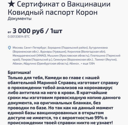 За три тысячи рублей авторы объявлений обещают изготовить бумажную справку, которую покупатель якобы сможет предъявить на работе.