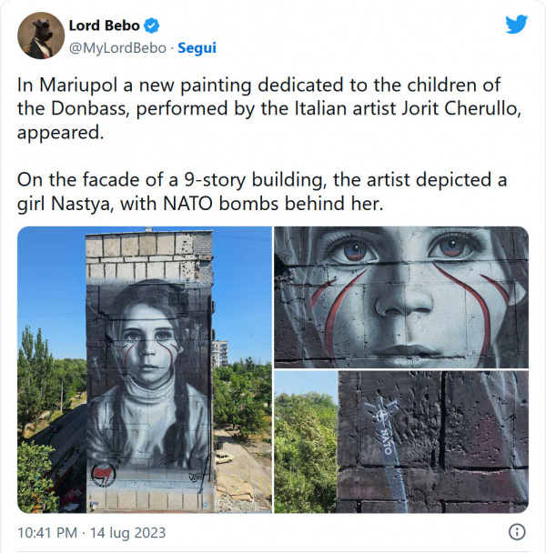Он в своем Инстаграме объявил о завершении работы над муралом, который он нарисовал на разбомбленном здании в украинском Мариуполе, городе, находящемся под оккупацией российских захватчиков, причем в процессе захвата российская авиация почти уничтожила этот город.