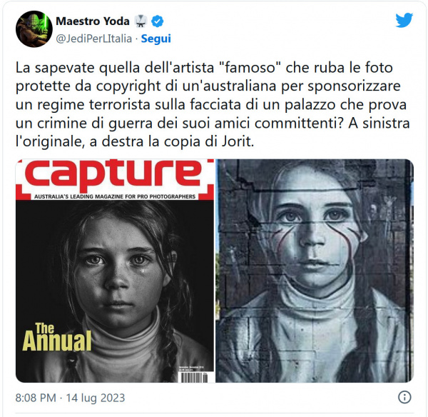 Ну и особую мерзость всей этой истории придает то, что этот Йорит даже и напрягаться особо не стал: он просто перерисовал фото девочки, появившейся в 2018 году на обложке австралийского журнала Capture, специализирующегося на фотографии.