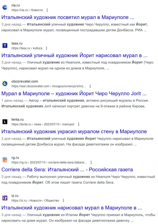 Есть такой итальянский уличный художник, работающий под псевдонимом Йорит, которого на самом деле зовут Чиро Черулло.