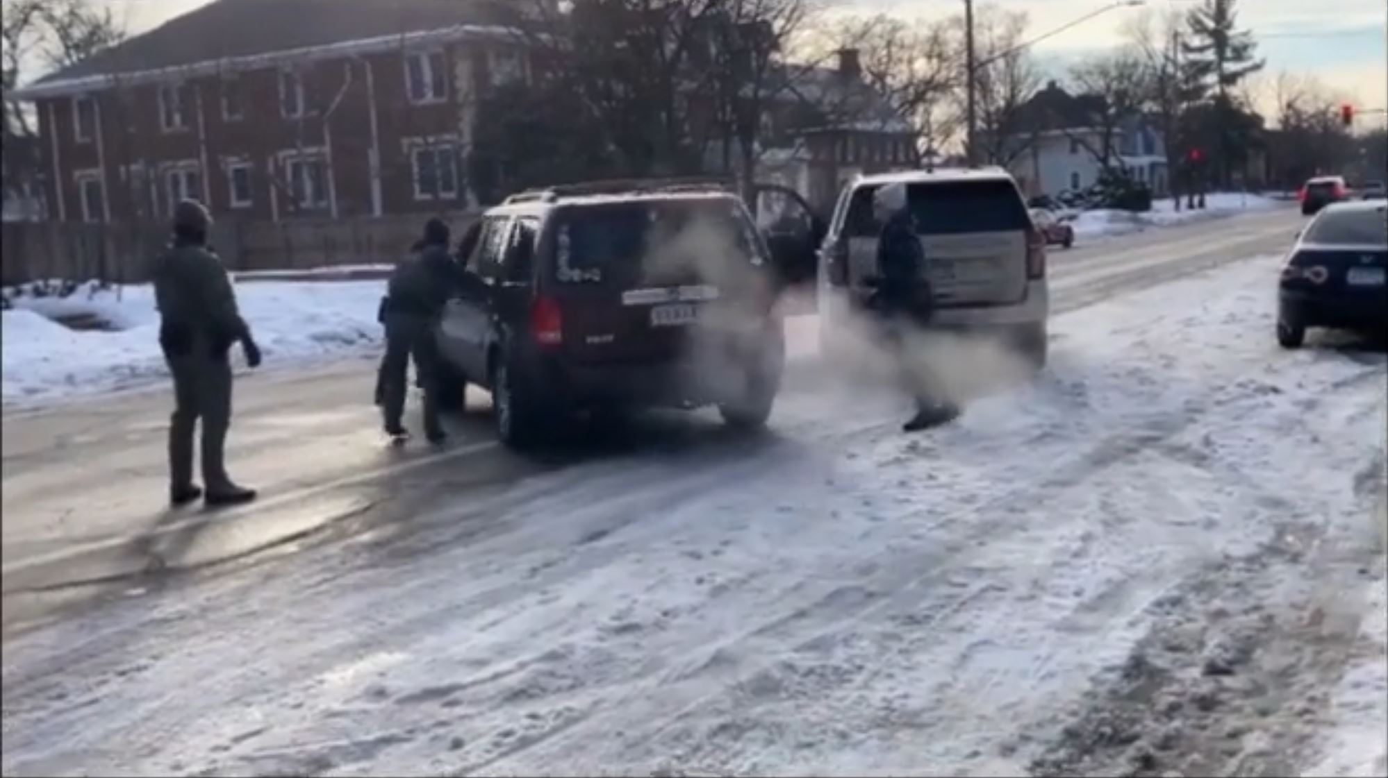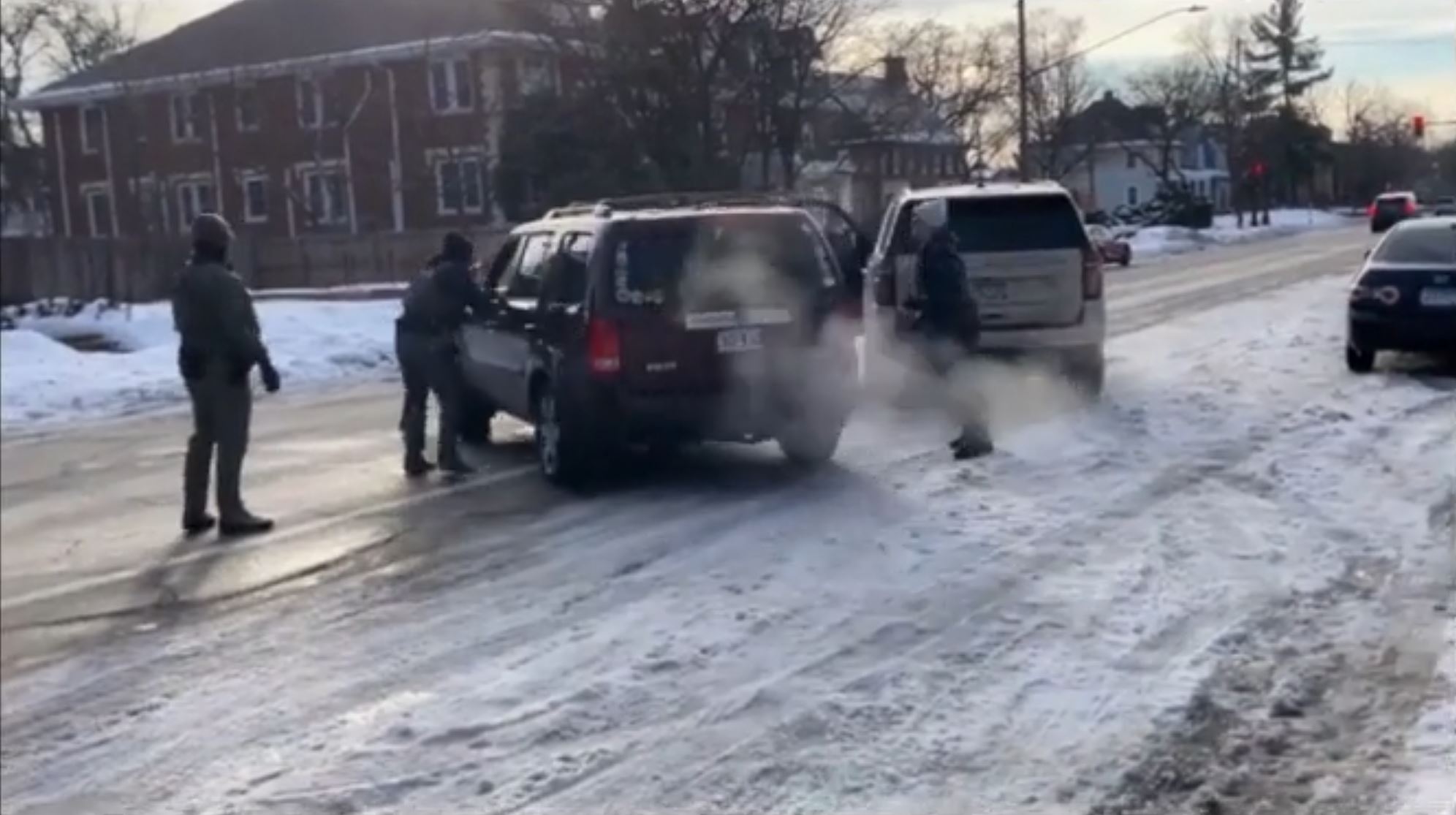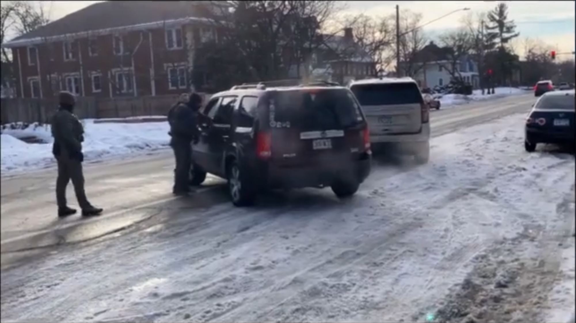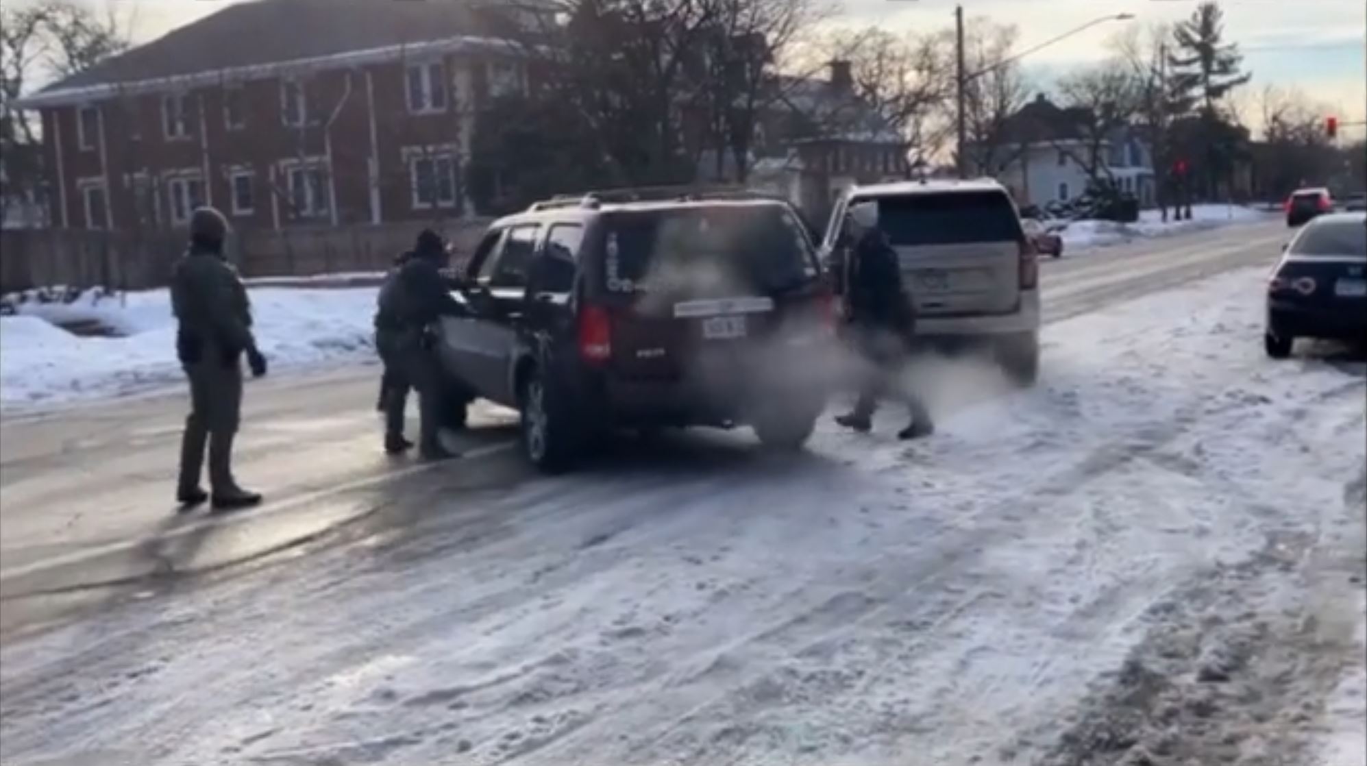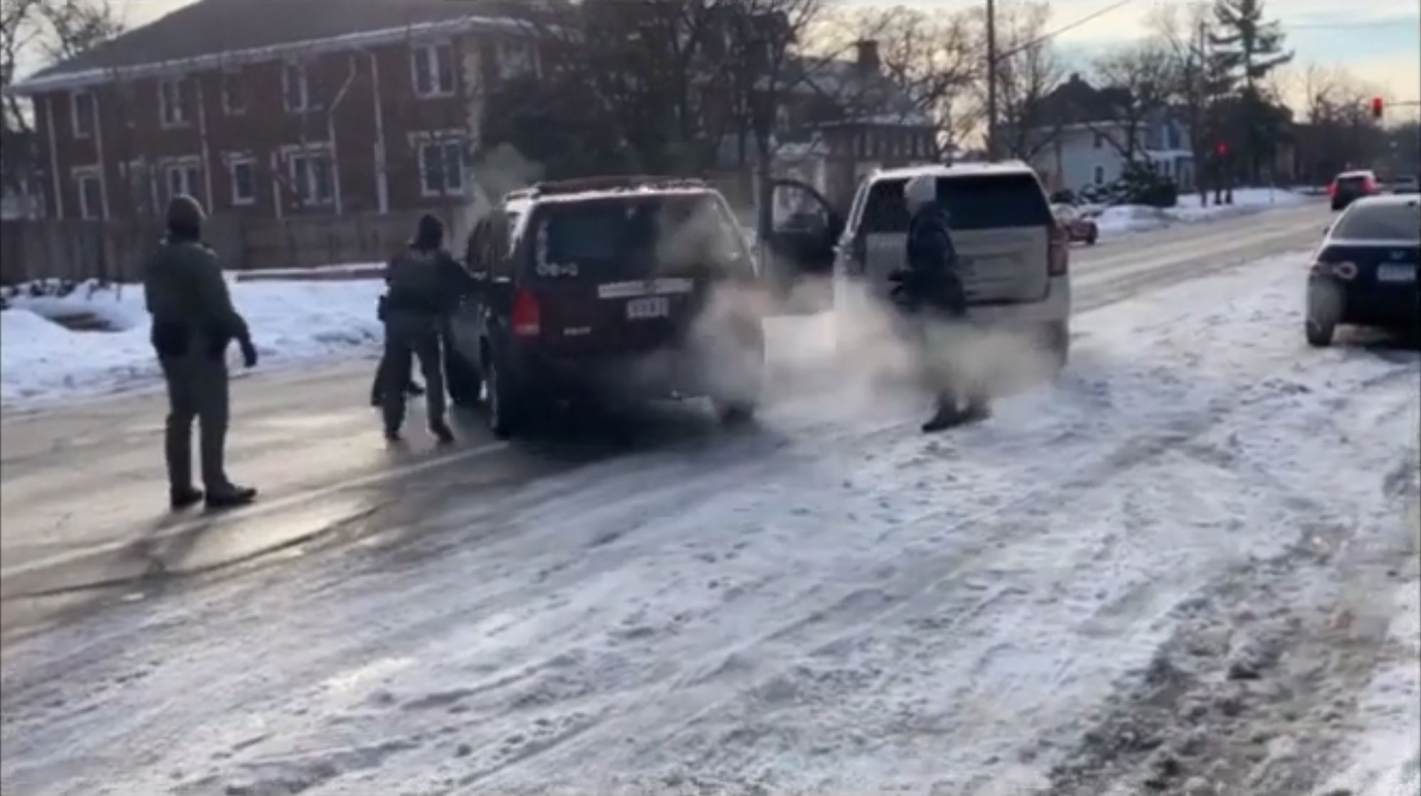 ее никто не останавливал. Ну и чтобы копу(настоящему) остановить машину в Америке, нужен probable cause, просто так нельзя. Ну и у копов (настоящих) уже наверное везде есть бодикамы, по которым потом и смотрят был ли коп прав или нет. У этих ряженых камер нет и я сильно сомневаюсь что у них была хоть какая-то подготовка по поводу того как себя вести с мирным населением. Похоже их учили наоборот - эскалации и тактики устрашения а не вот этой всей банальщине типа serve and protect