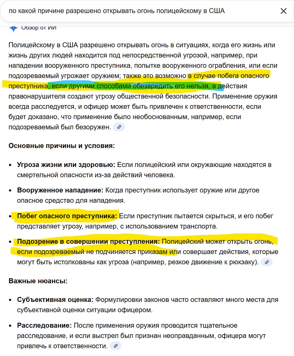 Я посмотрел. Действительно, полно подобных случаев, когда во время самой обычной остановки машины, агрессивный коп дергает за ручку или истошно орет на адекватного водителя. Водитель впадает в шок и в ступор, потому что смертельно напуган и не понимает требований. В итоге водителя убивают, потому что он "не подчинился требованиям".