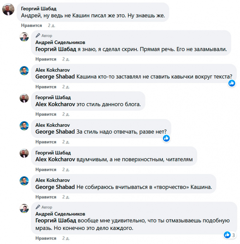 Сидельников,  увидев пост выдающегося феномена Кашина, в своем FB поднял крик
