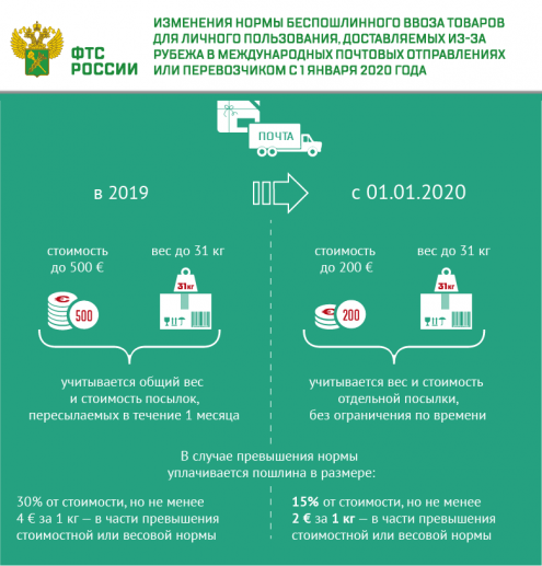 Изменение нормы беспошлинного ввоза товаров в РФ