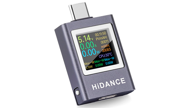 Поизучал, что там сейчас есть на рынке. Вроде бы были хорошие отзывы на тестер HiDANCE - он и в Амазонах есть, и на Aliexpress присутствует. Поддерживает мощность аж до 600 Вт (50V 12A), умеет поворачивать изображение на экране на 180 градусов (это, кстати, очень даже ценно, уж поверьте), выводит кучу самых разных параметров, может крупно показывать только основные параметры зарядки, поддерживает практически все протоколы - PD2.0, PD3.0, PD3.1, PPS, QC2.0, QC3.0, FCP,SCP, AFC, PE, DASH, VOOC.