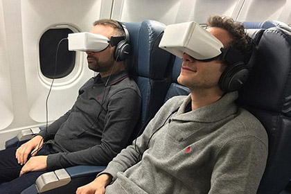 В этом году в продажу поступят Oculus Rift по цене в $600,что, в целом, достаточно приемлемо, - вот в них кино смотреть весьма приятно.только вот хватит ли батареи на долгий перелет - пока не ясно.