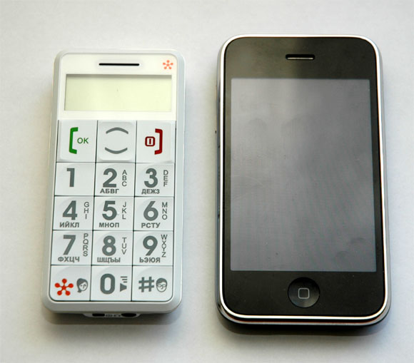 Я по итогам выставки в Барселоне писал уже о телефоне с большими кнопками. Сейчас мне привезли потестировать аналогичный телефон, который продается у нас - Just5 называется. Вот такая вот штучка (рядом с iPhone для сравнения).
