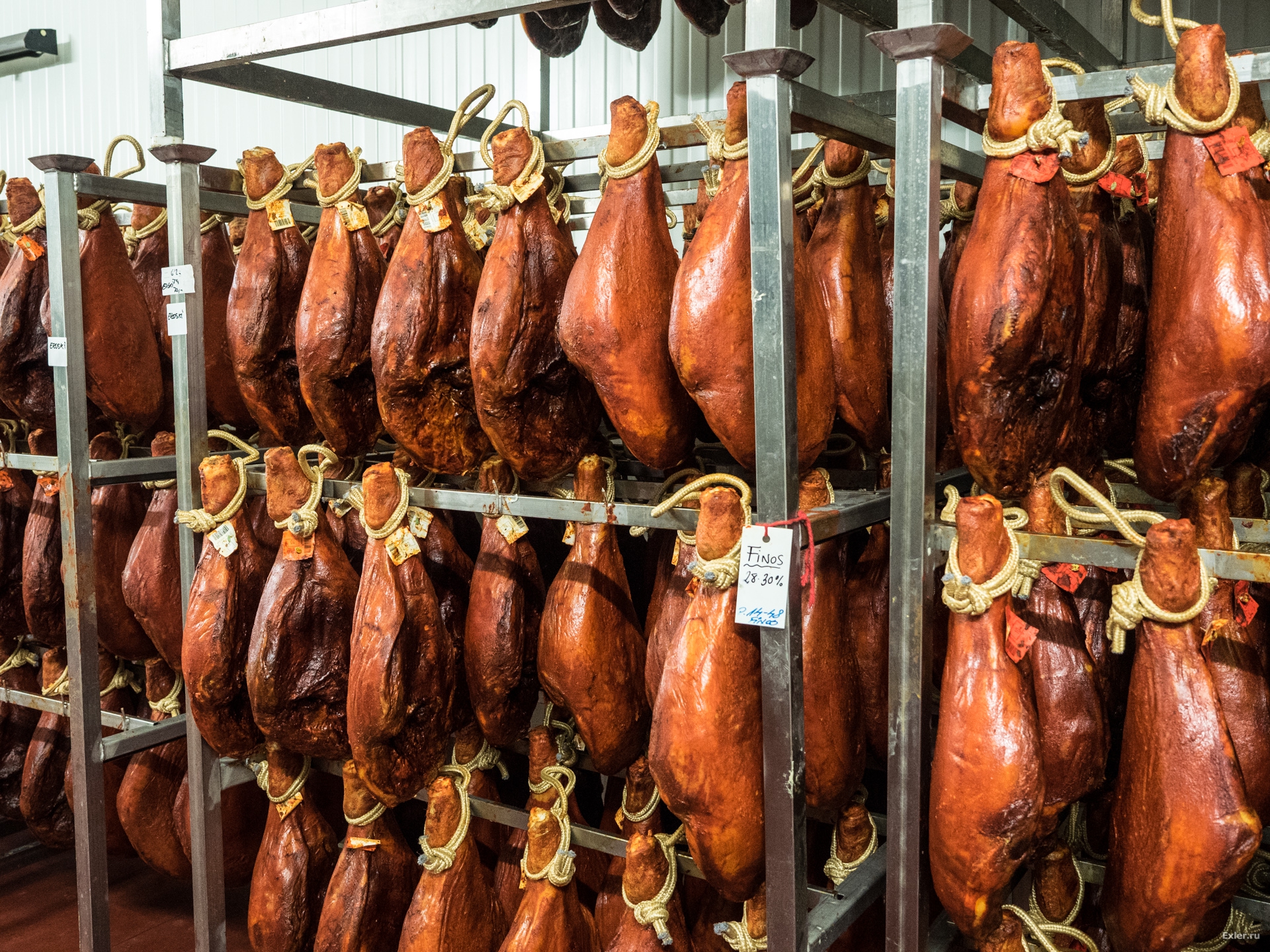 Кстати, только в этом городке хозяйств по производству хамона и колбас - уж пять штук. Микроклимат в этом месте очень способствует правильному созреванию, поэтому именно созданием хамона тут в основном и занимаются.