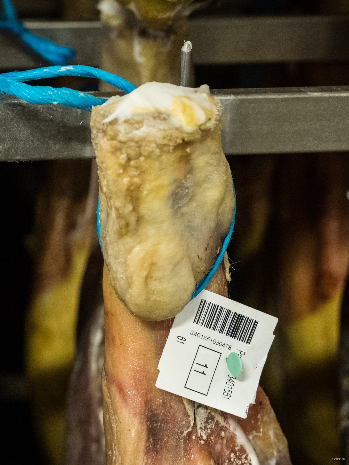 Кстати, обратил внимание на то, что в этом хозяйстве копытца у ляжек отрубают, а срез запечатывают свиным жиром - чтобы хамон не портился. У хамона-иберико черные копытца, символ породы, обычно оставляют.
