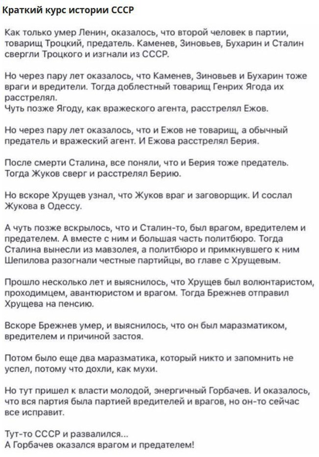 Сталин принял страну с Лениным и Троцким, а оставил с Хрущевым и Брежневым. (с)