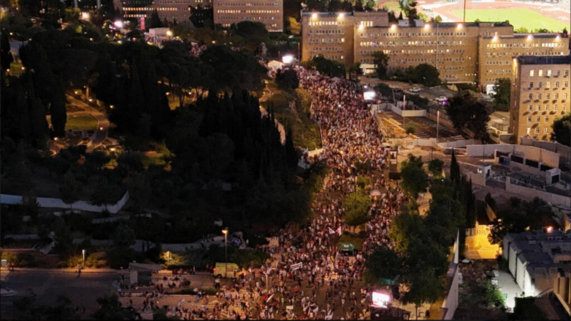 Десятки тысяч израильтян приняли вечером понедельника, 17 июня, участие в митинге в Иерусалиме, требуя проведения досрочных выборов в кнессет. Митинг, проведенный в рамках "Недели сопротивления", состоялся возле здания кнессета. Часть демонстрантов отправилась к дому премьер-министра Биньямина Нетаниягу на улице Аза и прорвала полицейский кордон. Манифестанты вступили в стычки с сотрудниками полиции и начали разжигать костры. Против нарушителей порядка был применен водомет. Полиция задержала одного из участников акции.