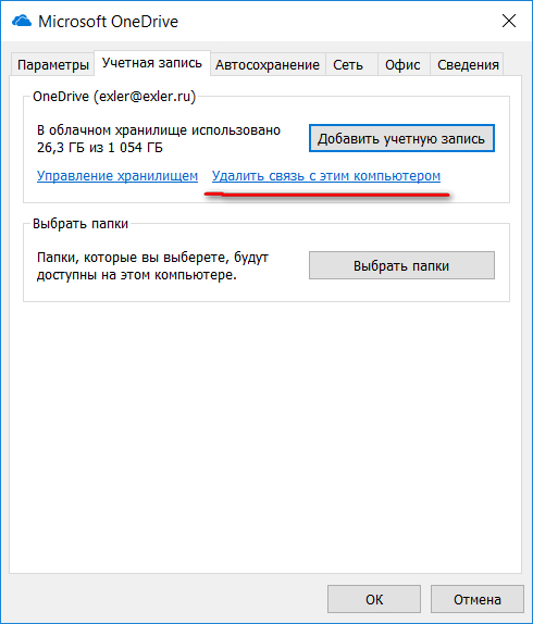 Далее в окне параметров OneDrive снова устанавливаем связь с этим компьютером - вводим e-mail нашей учетной записи в MS.