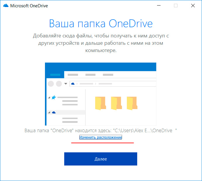 Ну и все, теперь OneDrive работает со своей папкой, расположенной там, где вы указали.