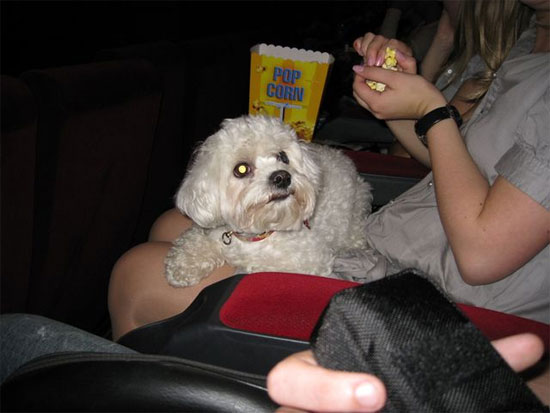 Как же это неудобно наверное, просидеть весь фильм с собакой на коленях - ноги постоянно напряжены и сведены вместе.