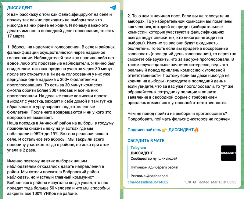 Так ведь, согласно вашей информации, нарушением является размещение постов с призывами приходить на участки, а не сам факт прихода на избирательный участок в указанное время.