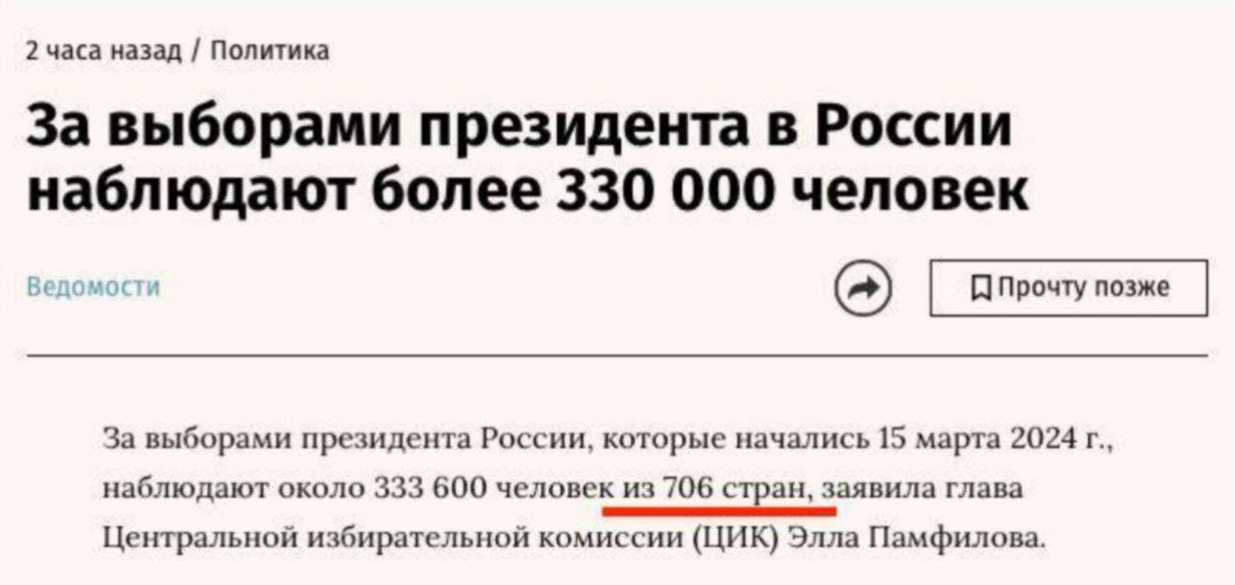 Может, глупый вопрос, но мне вот непонятно, что в теперешних реалиях помешает власти не заморачиваться с разными вбросами бюллетеней, а просто тупо объявить нужный процент победителя? Кто это будет проверять, опереточные конкуренты вождя? Наблюдатели?