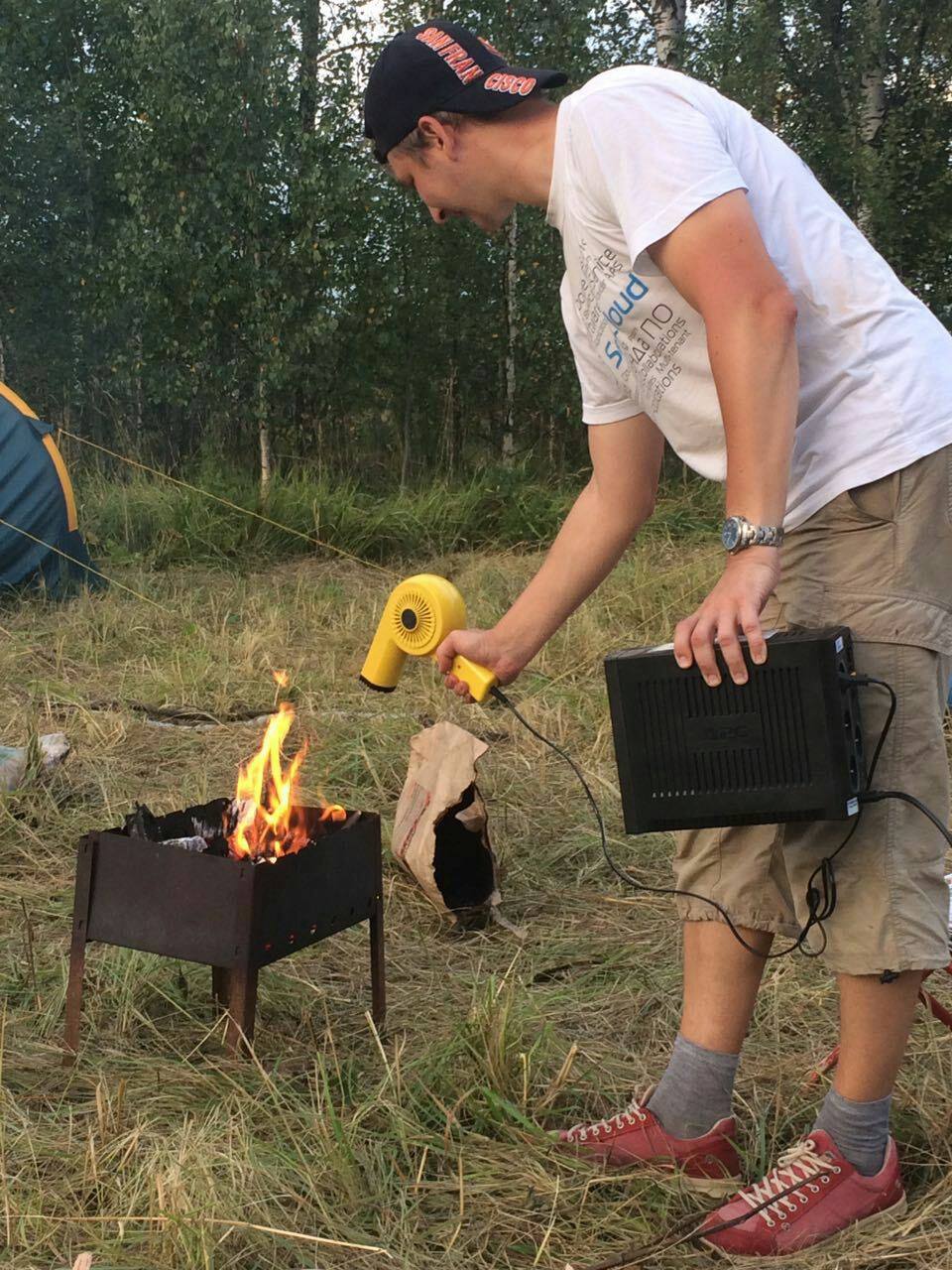 Всегда хотел дроном по раздувать. И дроны есть (и не один). Но как-то не складывается - либо всё горит хорошо и так (через специальный разжигатель на сухом спирту), либо за дроном далеко идти и по старинке просто подуть можно