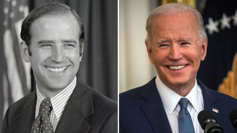 Слева: избранный сенатор Байден на фото 13 декабря 1972 года. СПРАВА: Президент Байден во время празднования Месяца черной истории 28 февраля 2023 года. (The Washington Post)