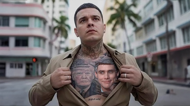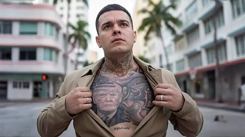 Оцените иронию. Парень на фото - подкастер родом с Кубы, известный под псевдонимом El Oski. Он живёт во Флориде и является ярым фанатом Дональда Трампа настолько, что он даже сделал тату с его физиономией на груди.