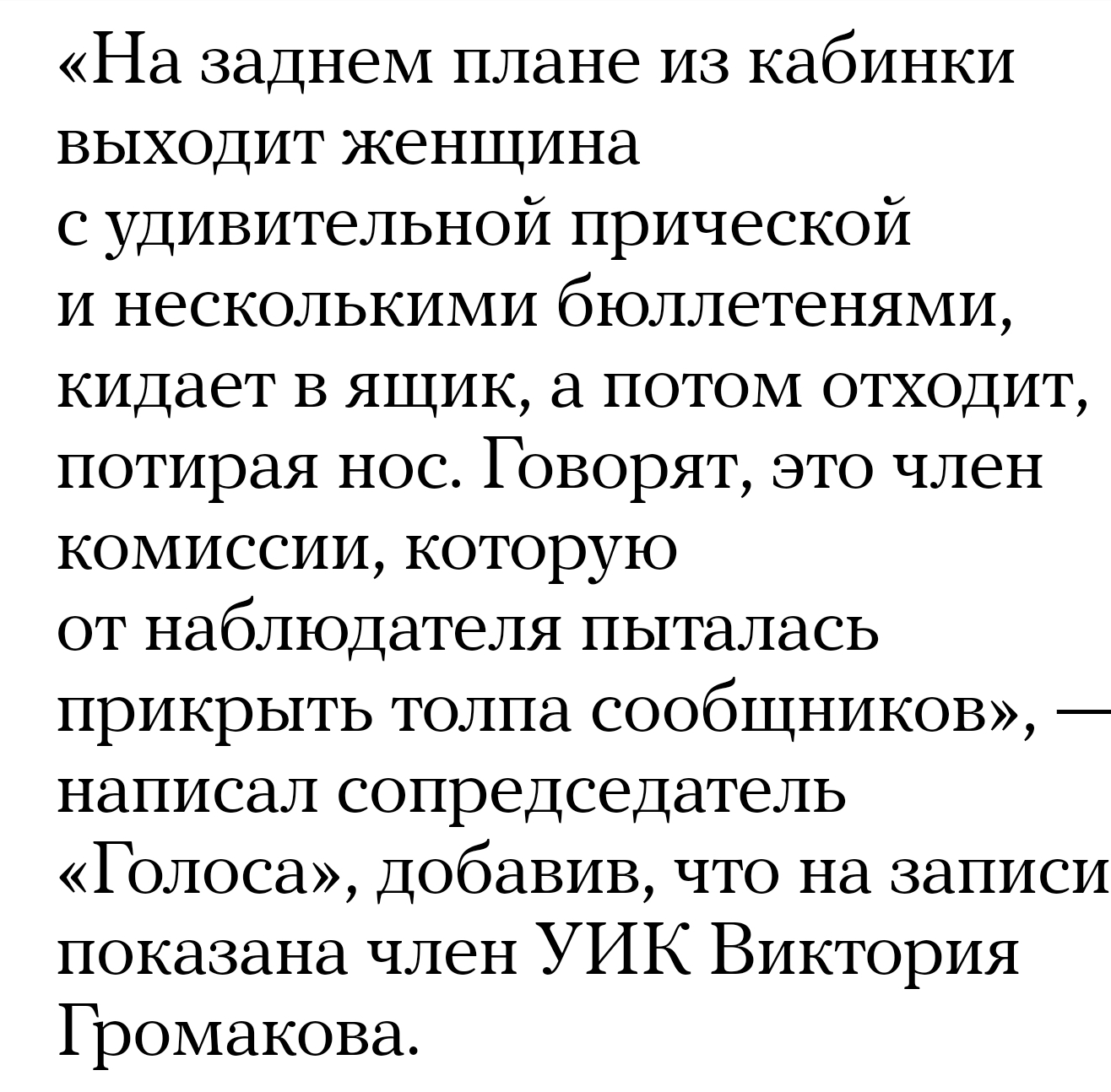 📌СК возбудил как минимум 15 дел о «воспрепятствовании работе избиркомов», три из них — в Воронежской области (она в лидерах по этому показателю). Начались аресты: в Петербурге под стражу отправили девушку, которая бросила коктейль Молотова на крыльцо школы с двумя УИКами.