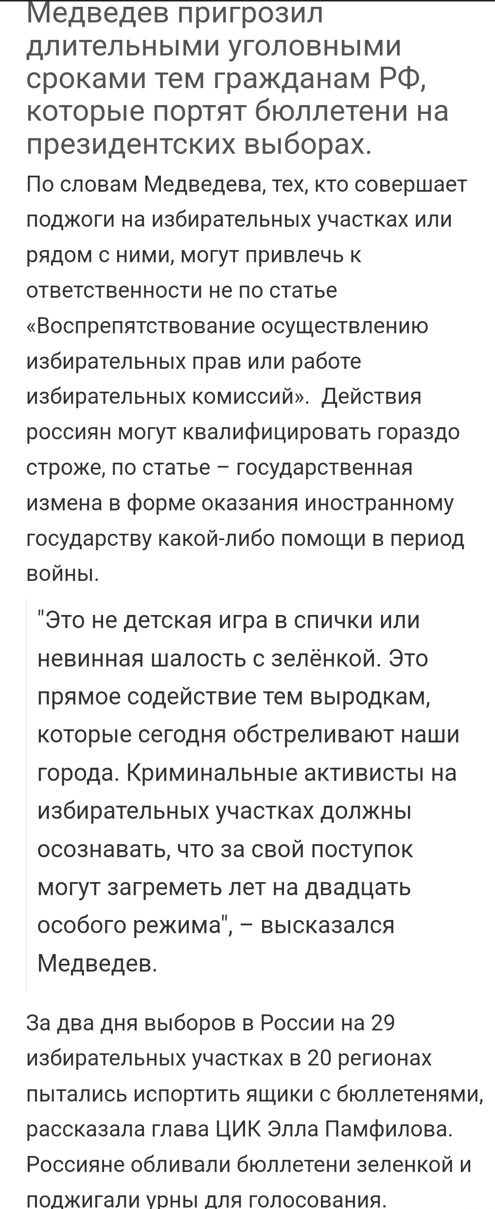 P.P.S. На самом деле понятно, что виноваты в произошедшем я и такие, как я: не смогли донести до необучаемых имбецилов простую мысль, что любой ажиотаж на участках в любое время будет использован для показа в СМИ картинки огромной явки на выборах и всенародной поддержки недогитлера.