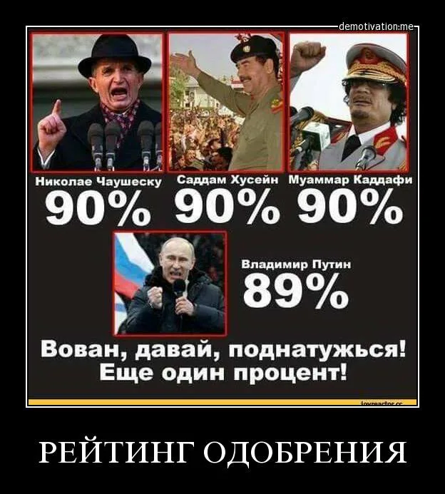 P.S. И да. 55-60% по оценкам. Старичьё-#удачьё массово за фюрера и за массовые убийства, это уродцы рода недочеловеческого. Отличных