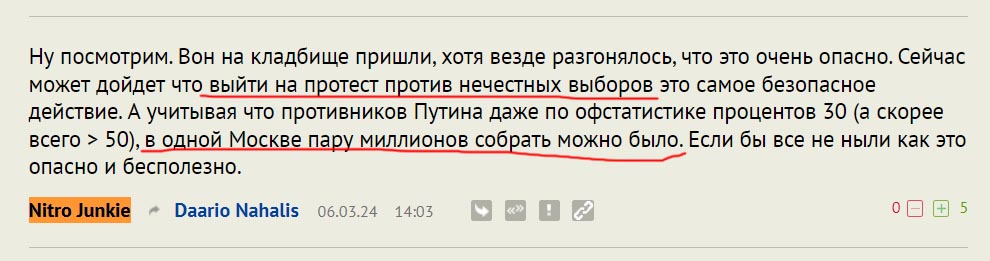 Важно то, что при любом раскладе, как ни считай, у путина есть минимум 60% поддержки. И явка была 55+%.