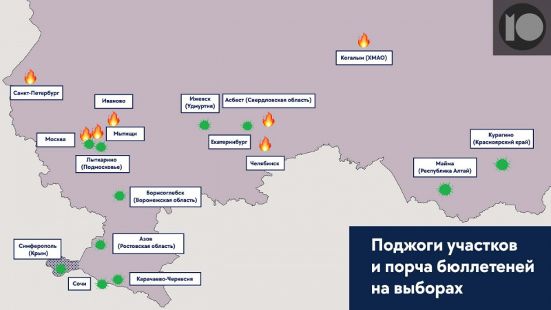 Пишут, что в разных регионах продолжаются поджоги участков и порча бюллетеней - их заливают зеленкой.