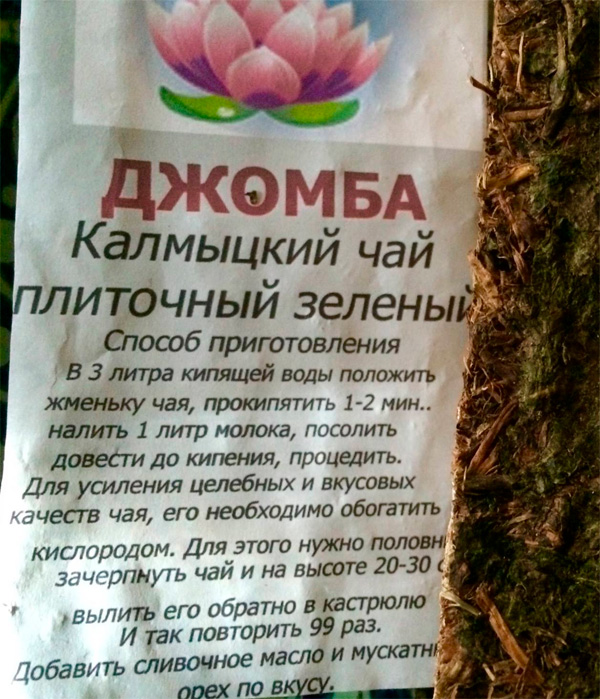 Когда в 90-х калмыцкий чай исчез, бабушка написала Илюмжинову, он (наверное, его администрация) прислали несколько плит.
