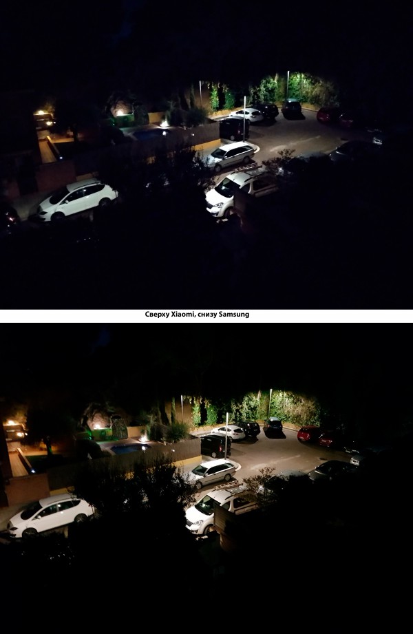 Я не вижу серьезной разницы. Ну да, Samsung, как обычно, нещадно шарпит и задирает контраст, так что картинка смотрится слегка эффектнее, но меня его этот перешарп и контраст уже достал, если честно. У Xiaomi кадр выглядит естественнее. По щелчку откроются полноразмеры - можно поизучать, если кому интересно.