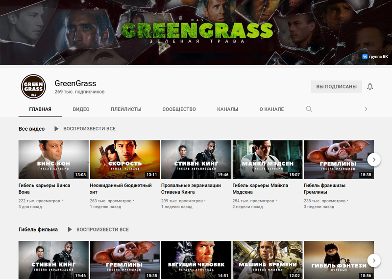 Подсел на youtube-канал GreenGrass, который как раз там и посоветовали. Кто ведет этот канал - не написано. Автор подробно разбирает карьеры многих голливудских звезд, также делает обзоры фильмов какой-то определенной тематики или разбирает конкретный провалившийся блокбастер. Плюс - нередко рассказывает всякие кинематографические байки о тех или иных актерах или фильмах, и это все достаточно интересно. Слушаю на прогулках прям все подряд - наверное, послушаю все выпуски, коих там под 200. Мне нравится.