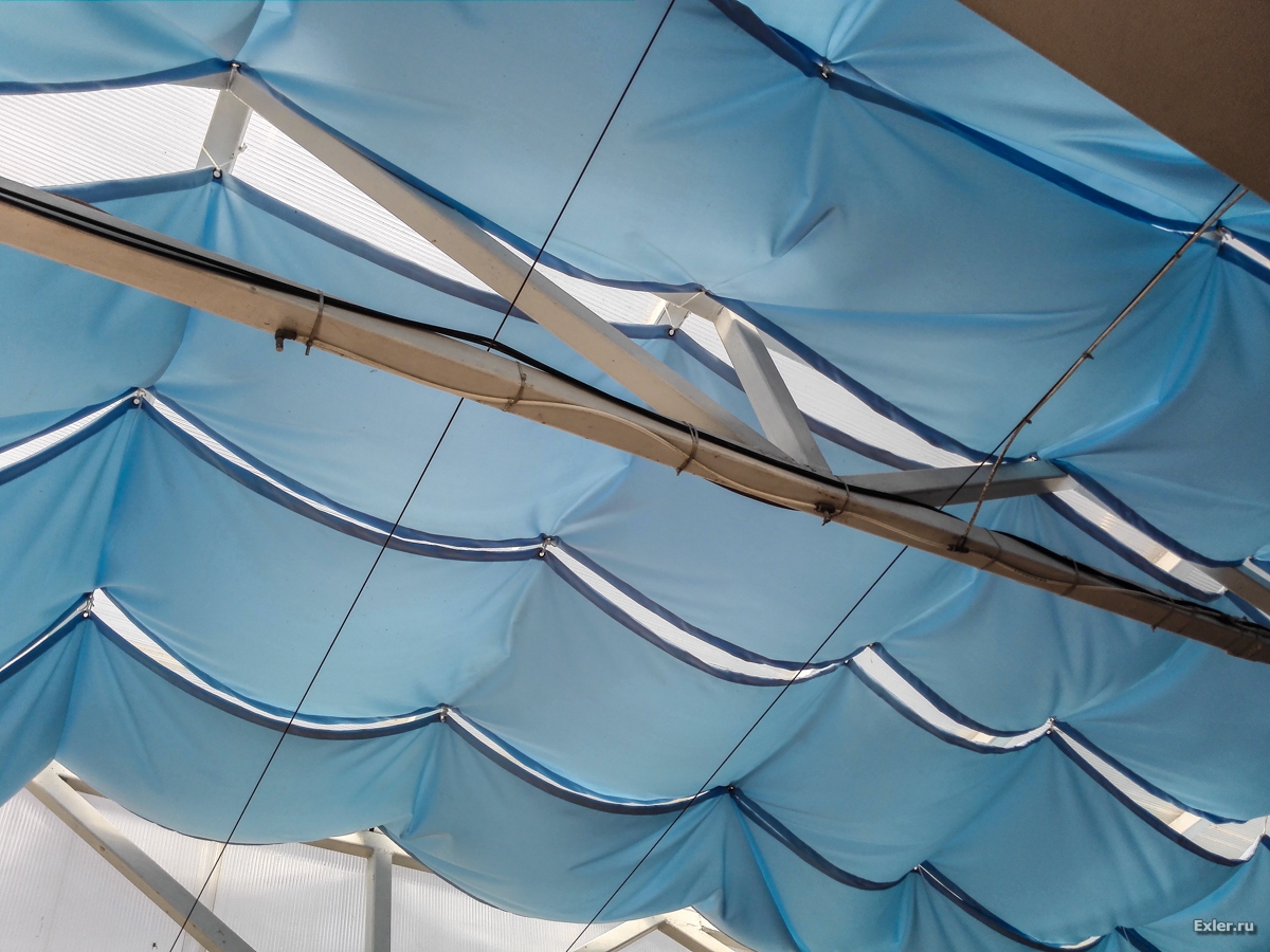 На террасе установлена система, которую я встречал во Франции и Италии: по перекрытиям протянуты тонкие трубочки, откуда время от времени распыляется водяное облачко - это здорово освежает.