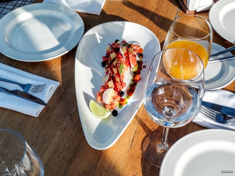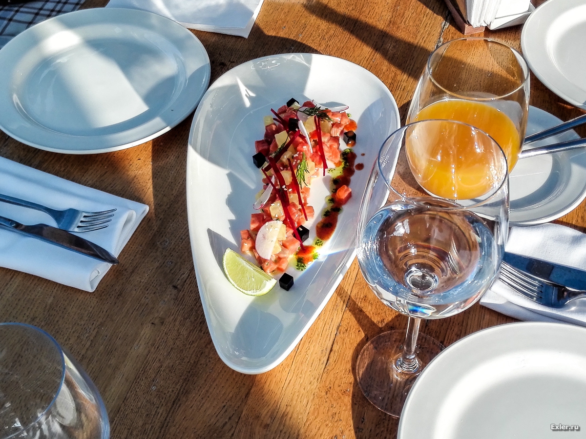 Alex Exler: Там есть и внутреннее помещение, но мы, конечно, сели на открытой терассе, чтобы любоваться видами.
