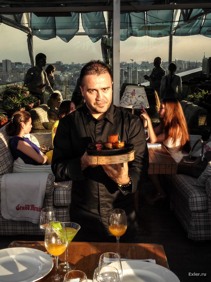 Вообще любопытно. По моей практике, когда ресторан имеет красивые виды, еда там - не фонтан. Но Карло опроверг данный стереотип. Вкусная еда, хорошее обслуживание, шикарные виды. При этом ценник - вовсе не конский. Карло рассказал, что они специально работали над тем, чтобы заметно снизить стоимость среднего счета. Для этого используются российские продукты (тем более, что многие нероссийские сейчас не достать), но качество стараются сохранить - на мой взгляд, им это удается.
