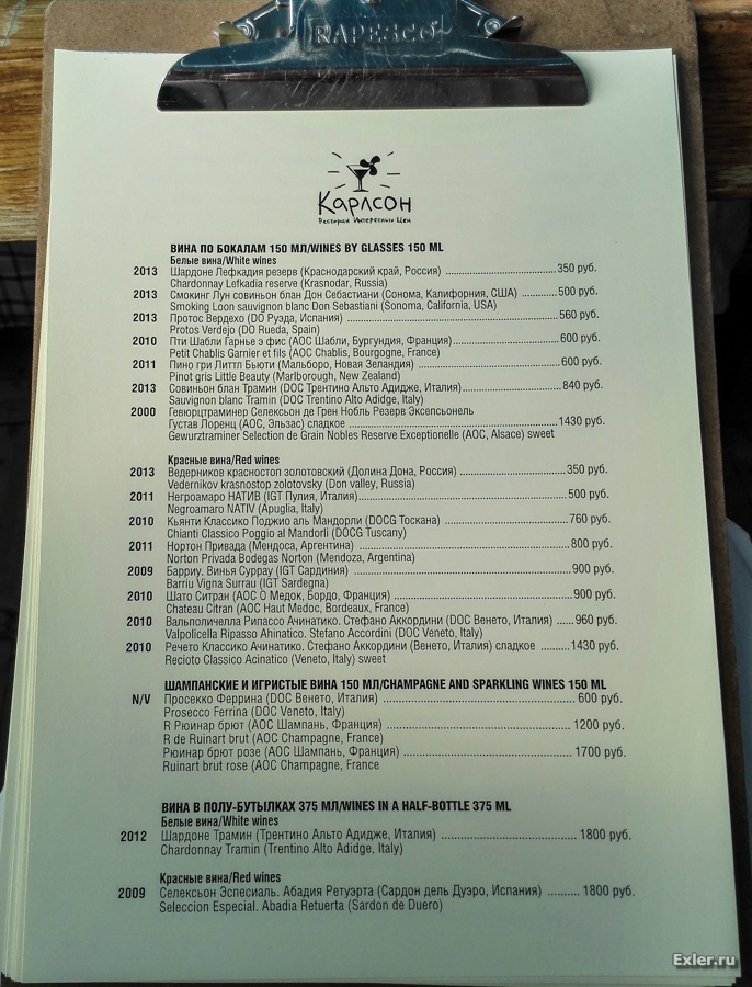 Кто куда - а я сразу за винной картой. Каковая оказалась очень достойной, причем еще отдельно порадовало разнообразие выбора вина по бокалам.