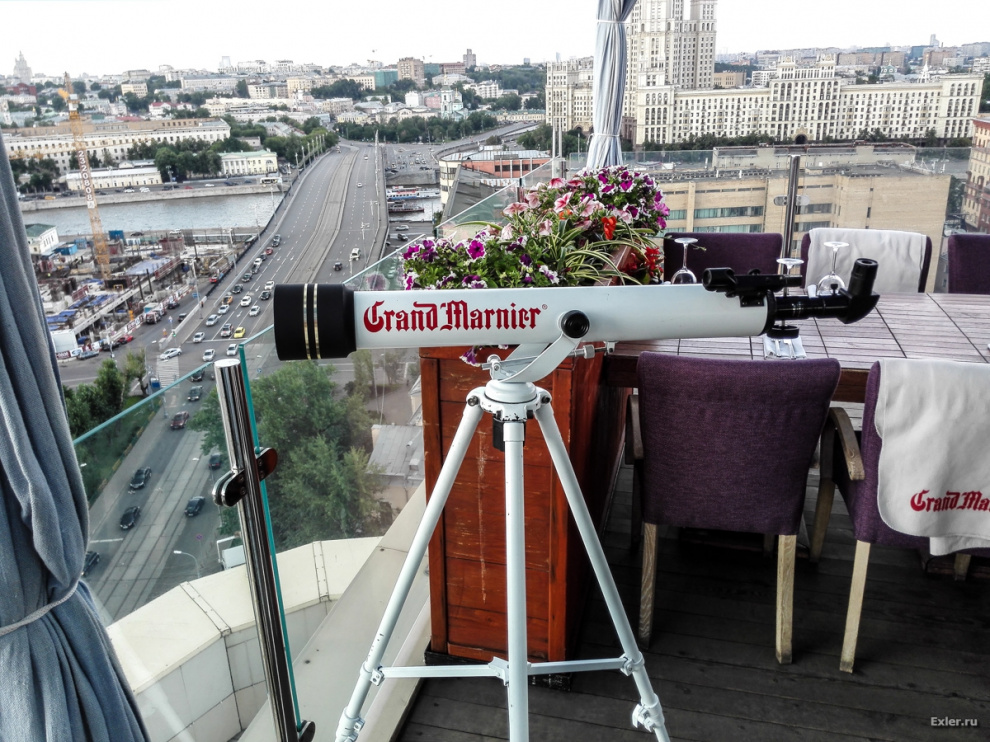 На открытой террасе установлено несколько телескопов - бесплатных. Приближают они хорошо, я даже сумел заглянуть в Кремль в кабинет сами понимаете кого.